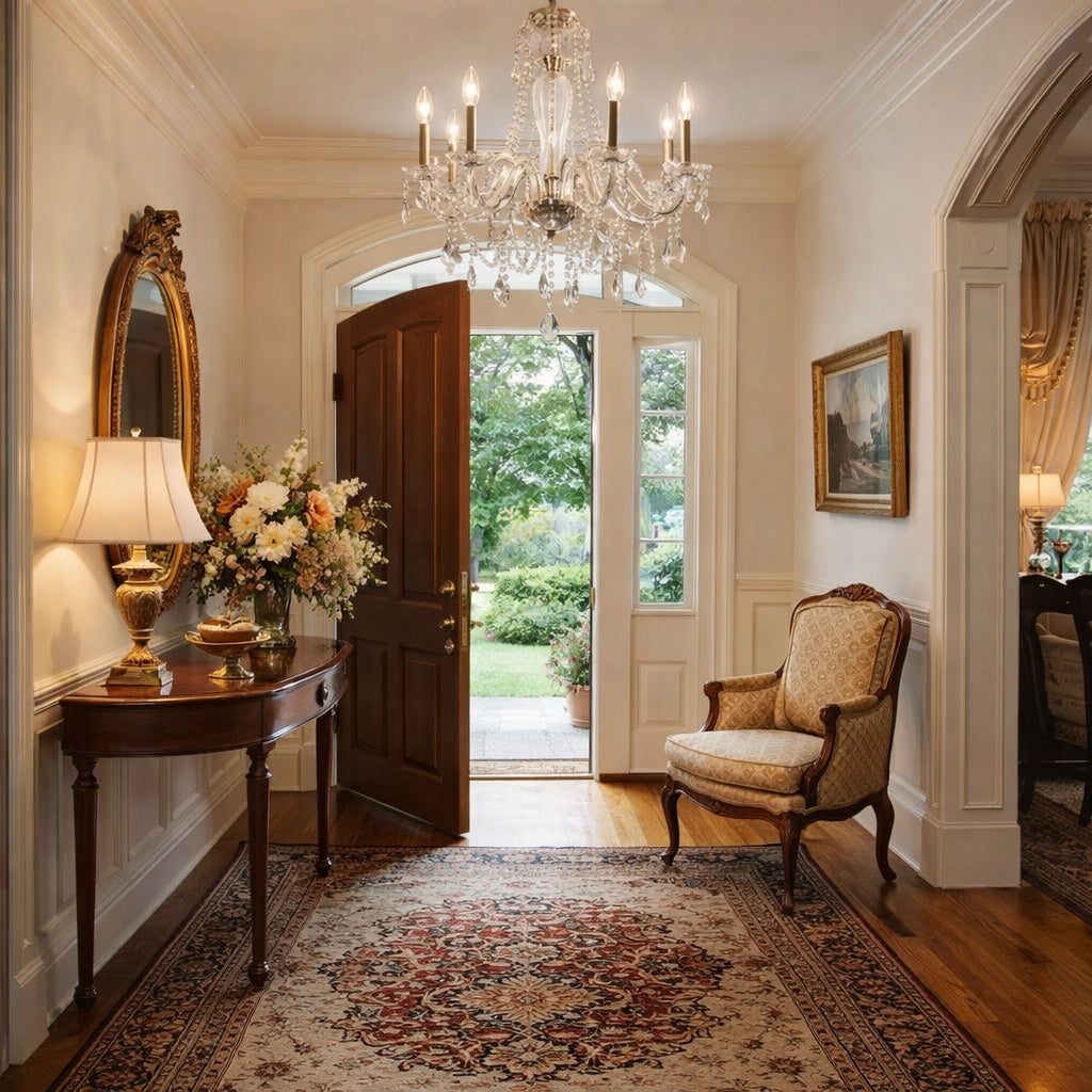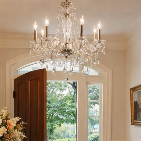 6 Light 1 Tier Candle Style Crystal Chandelier in Polished Chrome by TransGlobe