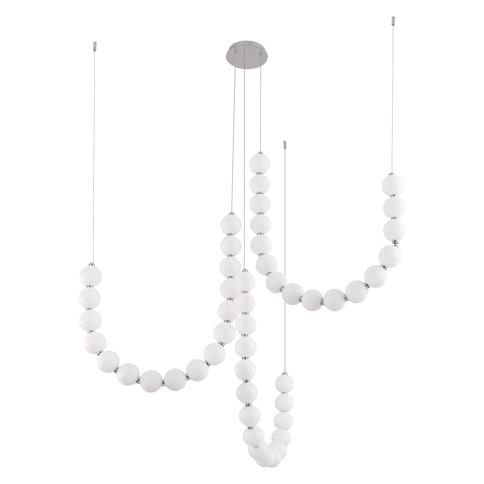 Inspired by the luxe pearls discovered by the sea, the Akoya collection is an instant classic. With unlimited amounts of configurations, this collection is perfect for any space in need of an awe-inspiring statement piece. Beads of illumination twirl in any way you prefer on a subtle frosted polished chrome frame. It will be the jewelry of any space.