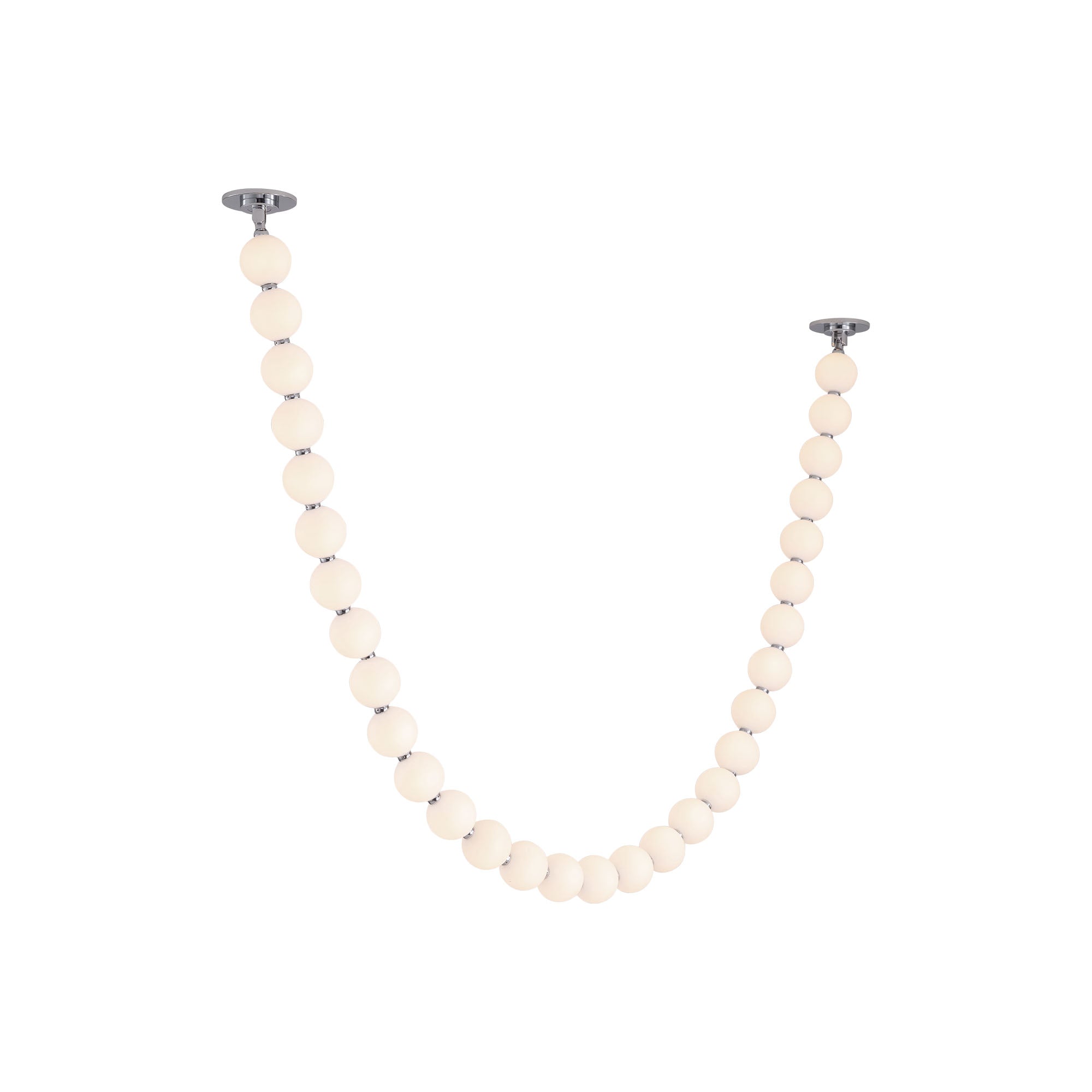 Inspired by the luxe pearls discovered by the sea, the Akoya collection is an instant classic. With unlimited amounts of configurations, this collection is perfect for any space in need of an awe-inspiring statement piece. Beads of illumination twirl in any way you prefer on a subtle frosted polished chrome frame. Now available in new sizes and canopy options.