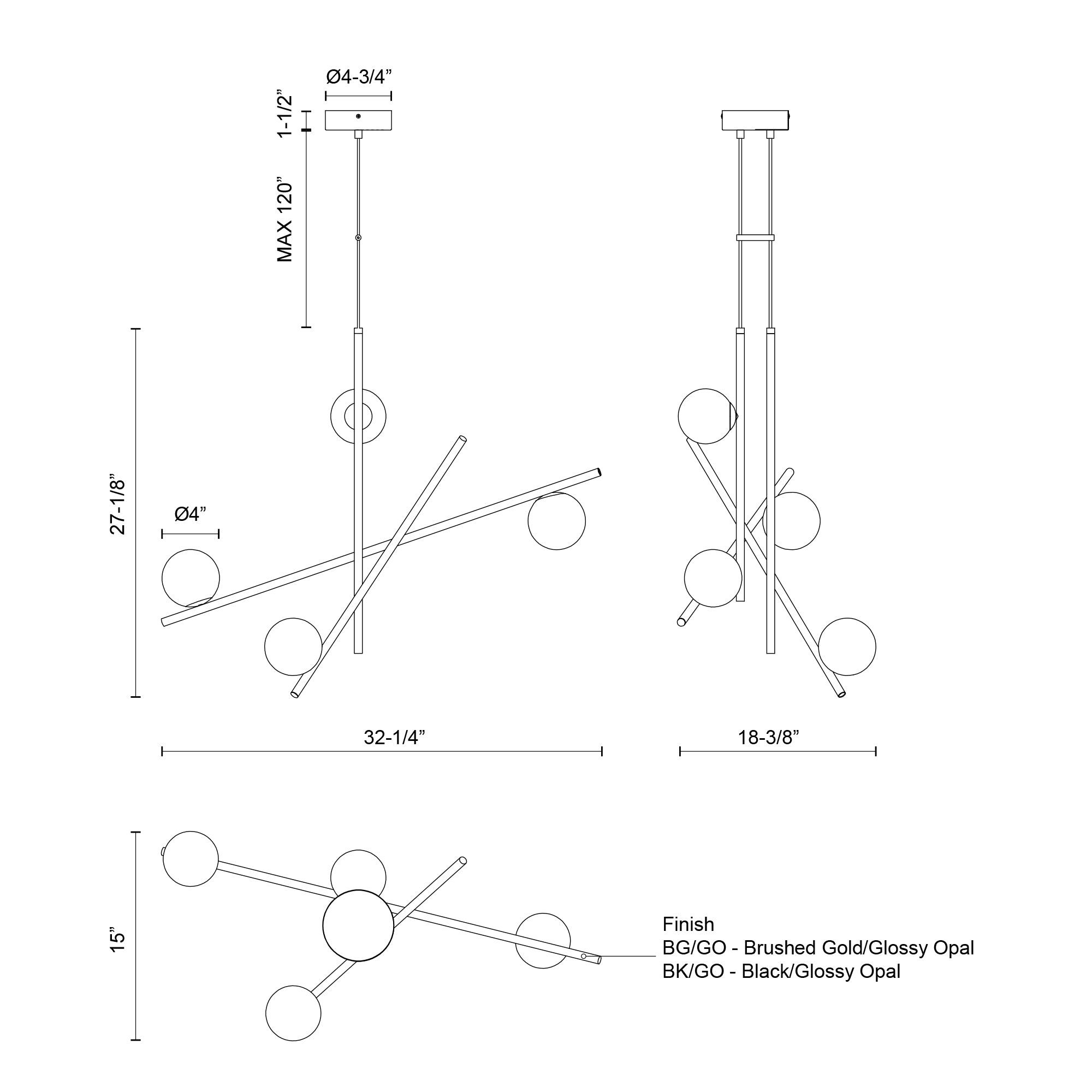 - Finish Brushed Gold/Glossy Opal Glass