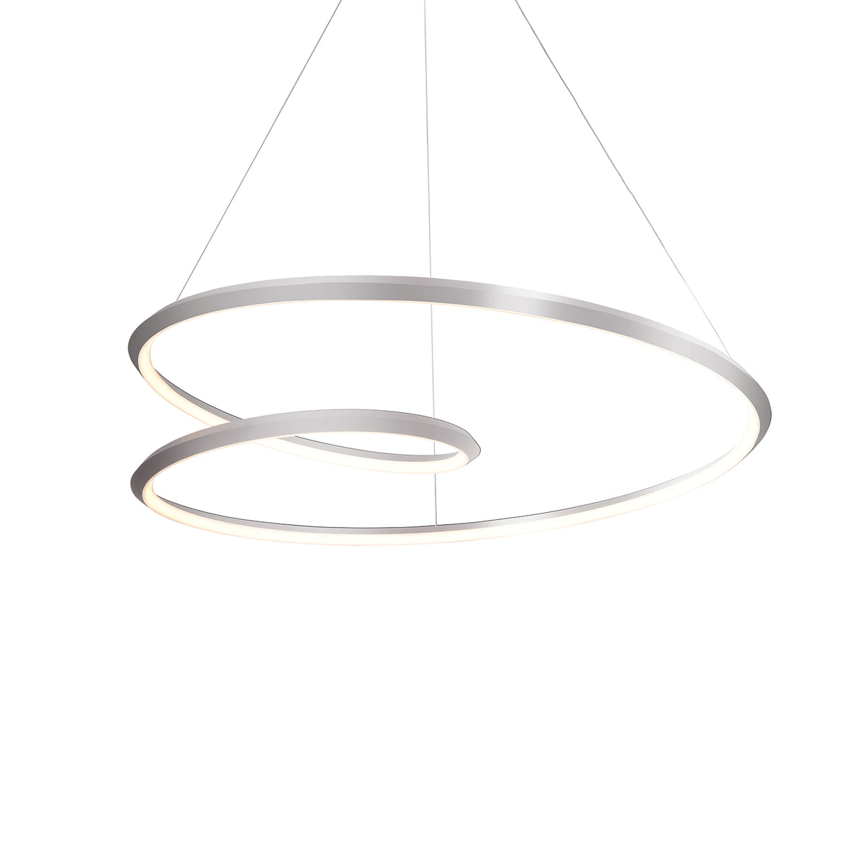 Triangular in section the interior arcing surface of the lamp structure emanates light while the profile tapers into a razor thin edge. Available in two sizes the gestural Ampersand chandelier provides a reductive aesthetic focus but accomplished with a poetic flair.