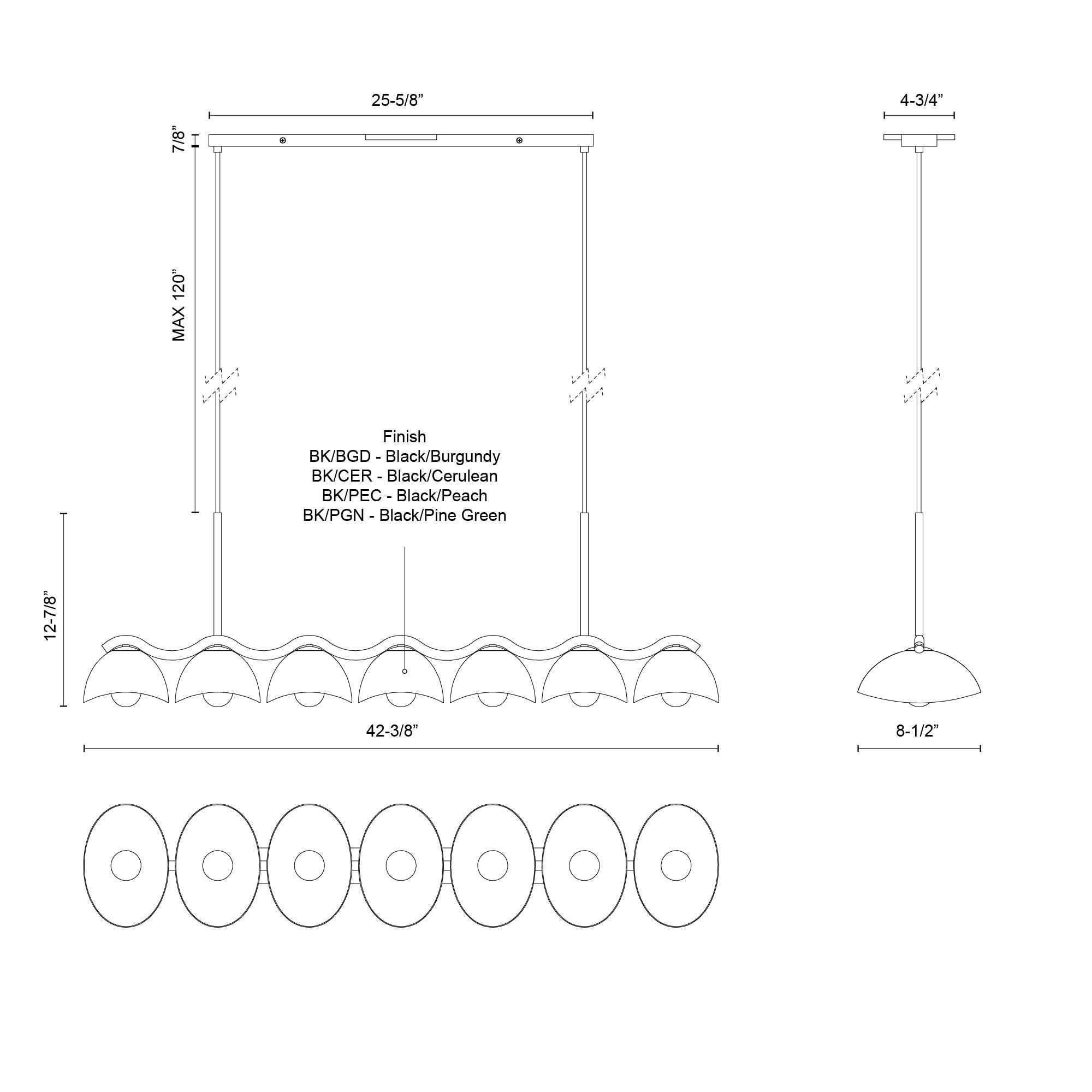 Atlas 42-in Black/Pine Green Socket Linear Pendant