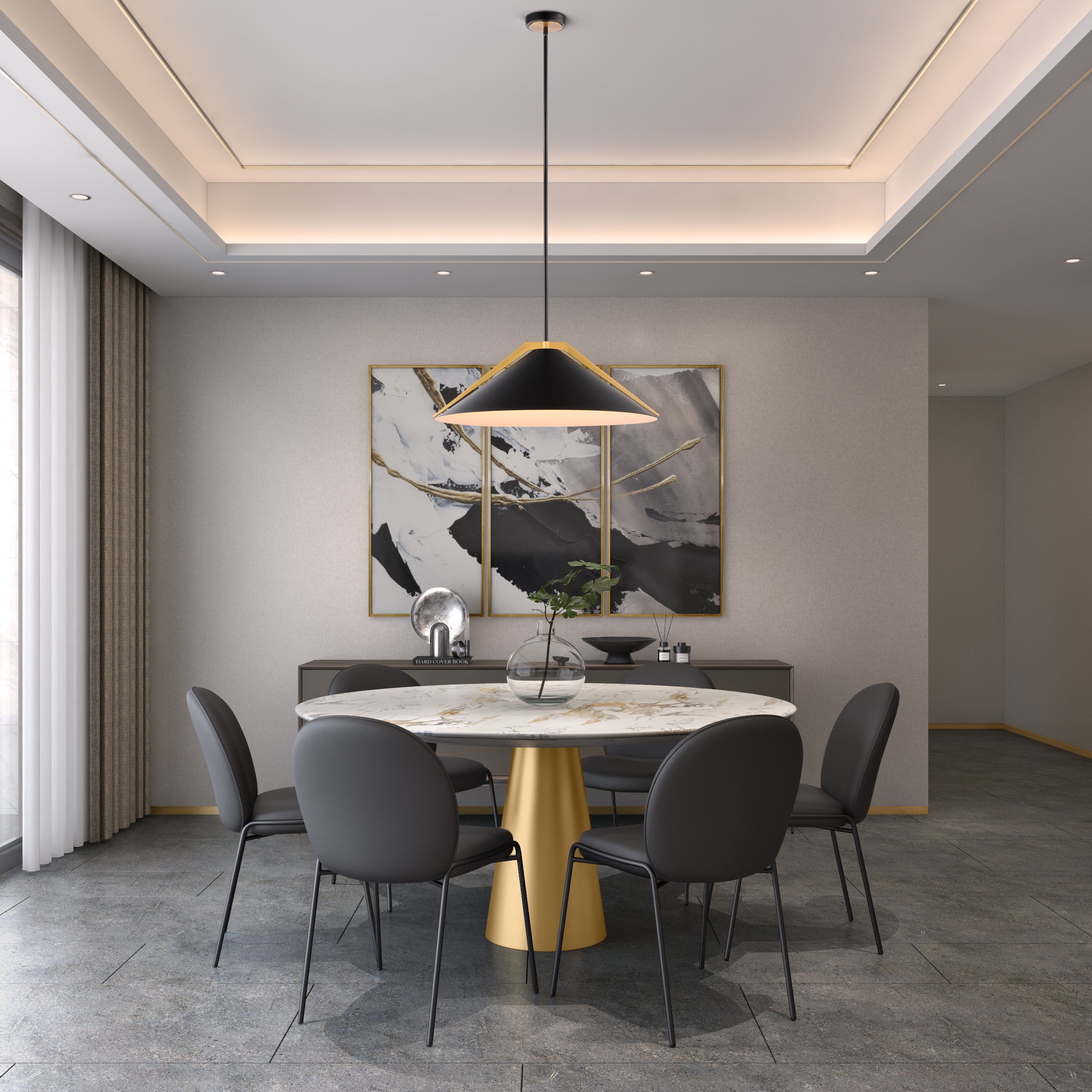 - Finish Black and Brushed Brass