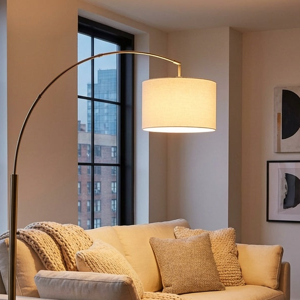 Stylish Bowery Arc lamp with adjustable fabric shade by AFJ - Adesso