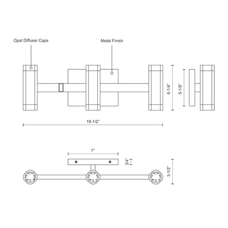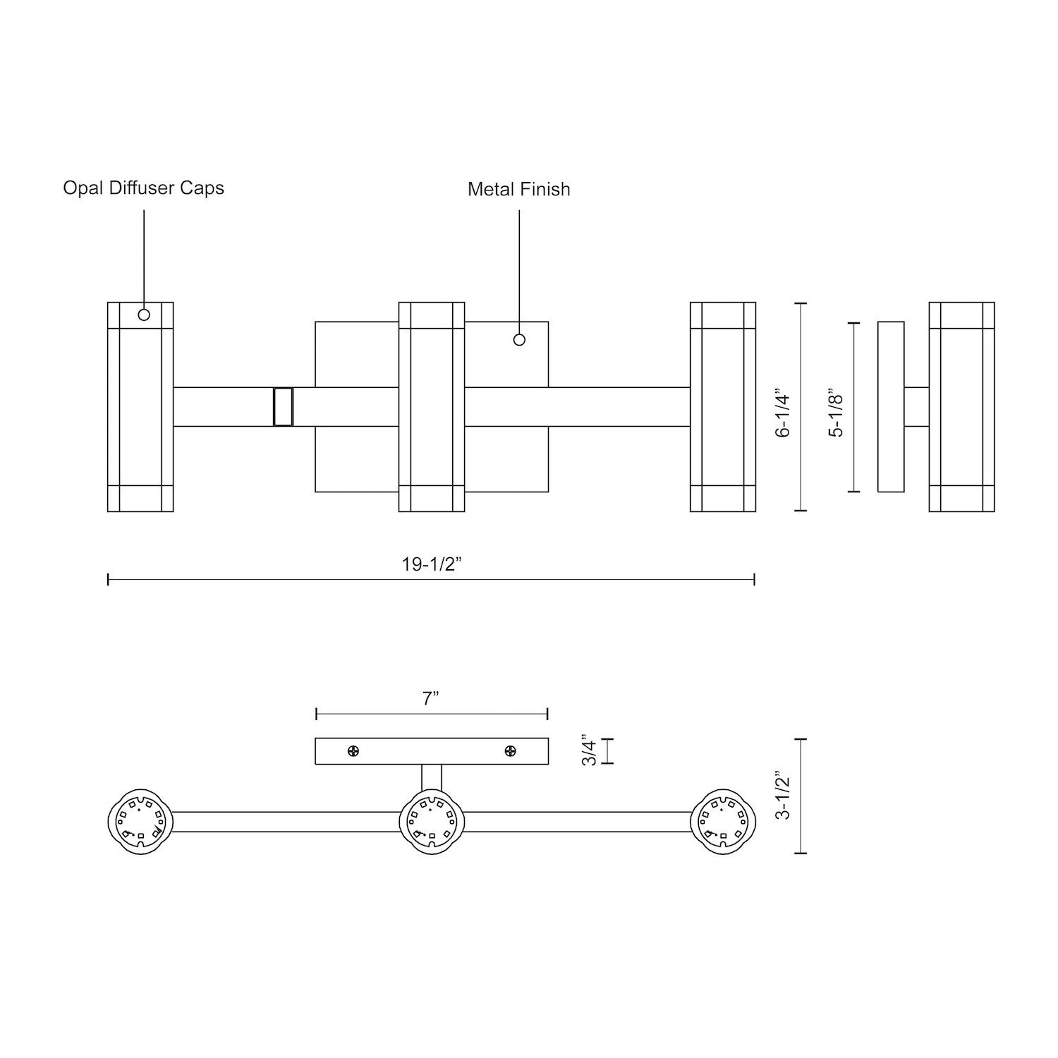 - Size W19-1/2" x H6-1/4" x E3-1/2"