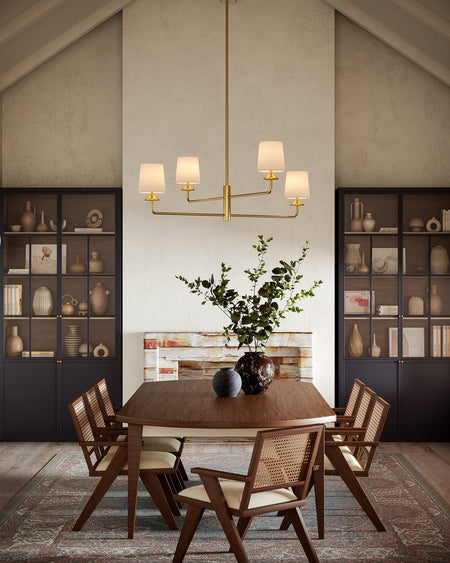Bridgette 45-in Brushed Gold/White Linen Socket Chandelier