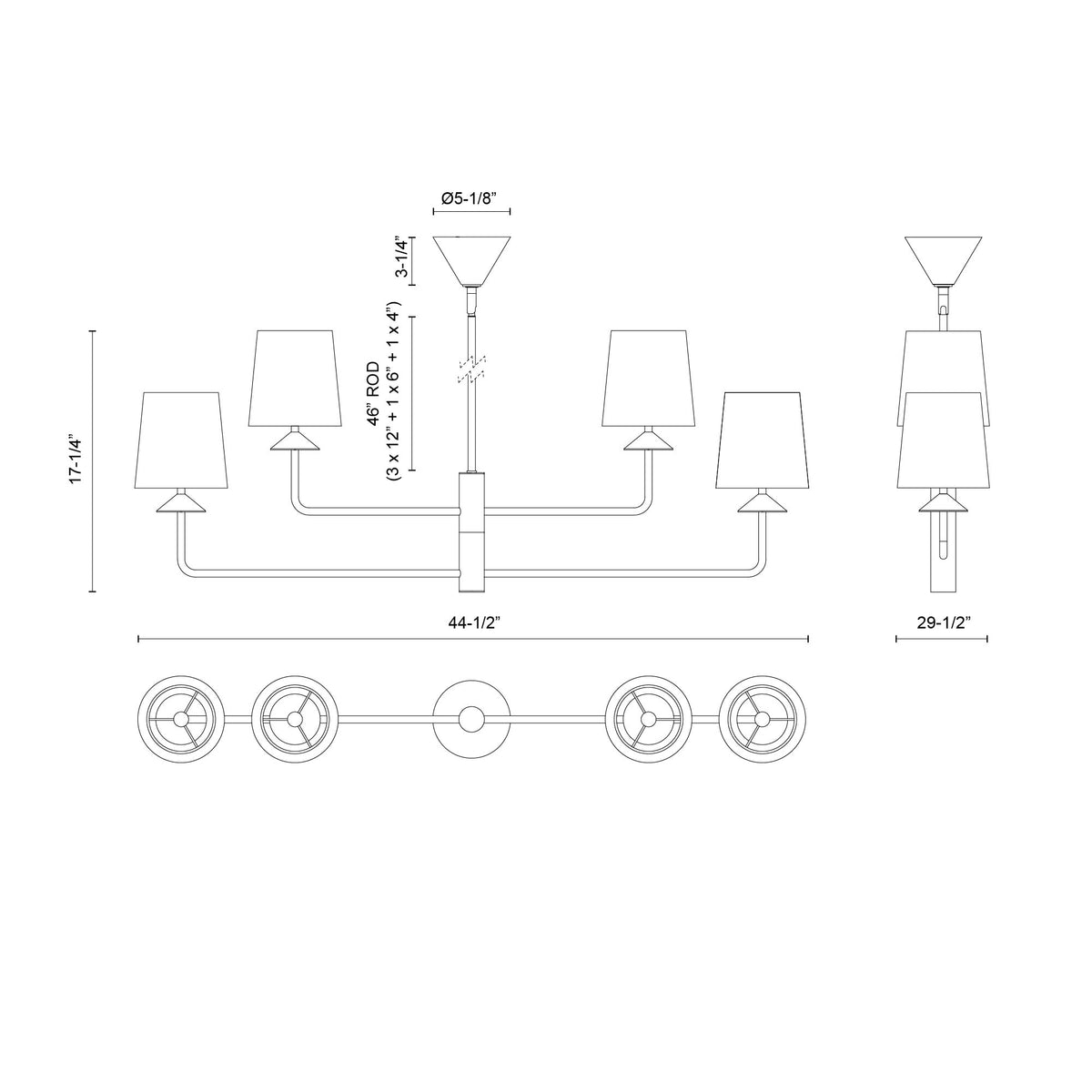 - Size L44-1/2" x W29-1/2" x H17-1/4"