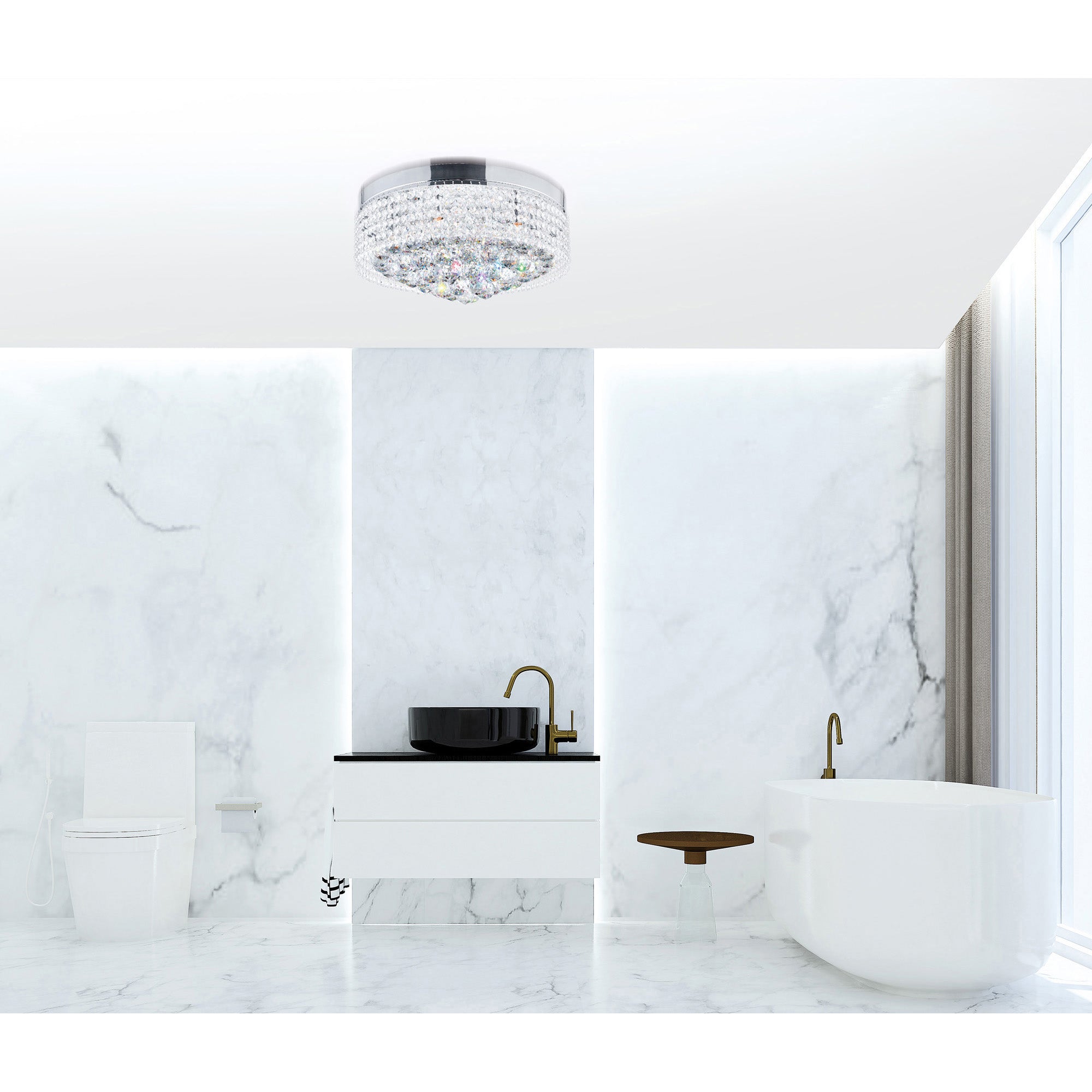Cascade 8 Light Drum Shade Flush Mount With Chrome Finish