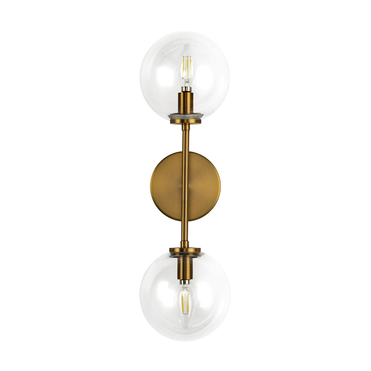 Cassia 20-in Aged Brass/Clear Glass 2 Lights Wall Vanity