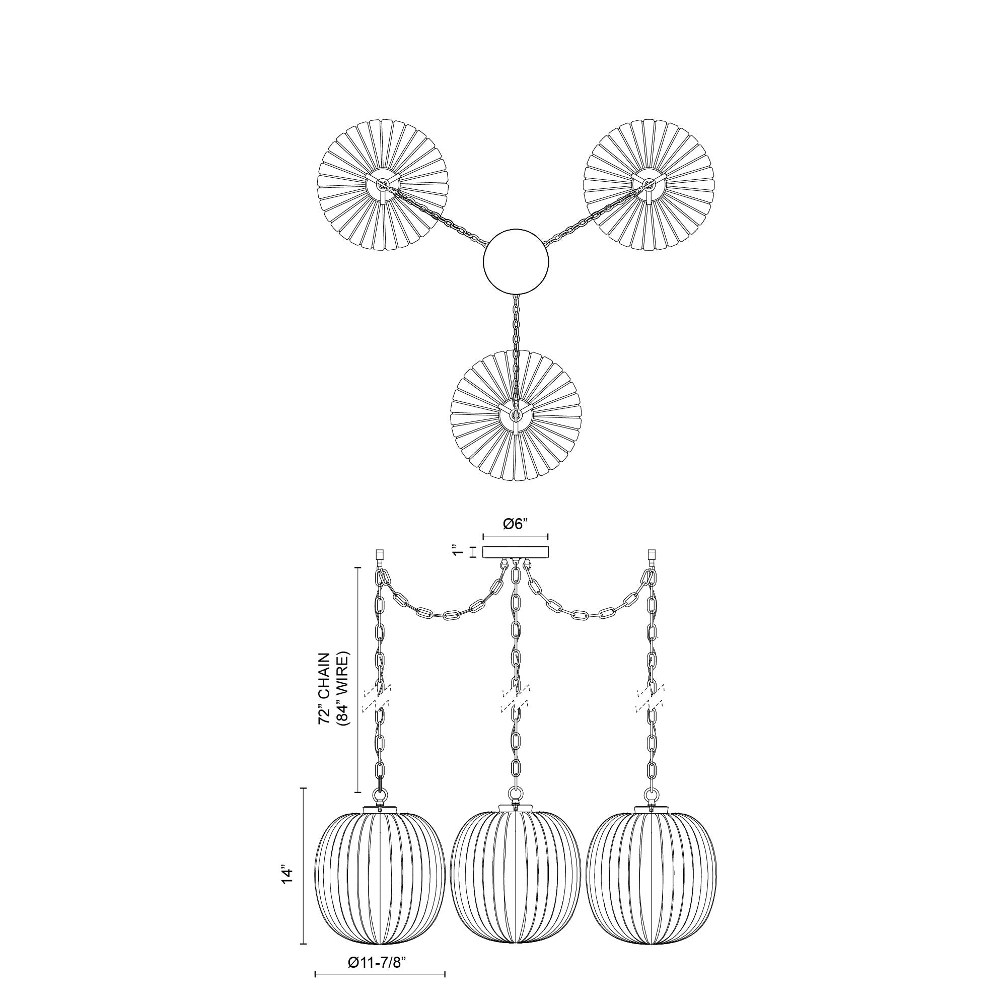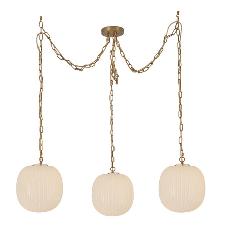 Cherise 3-Light Brushed Gold/Glossy Ribbed Opal Glass Socket Multi Pendant