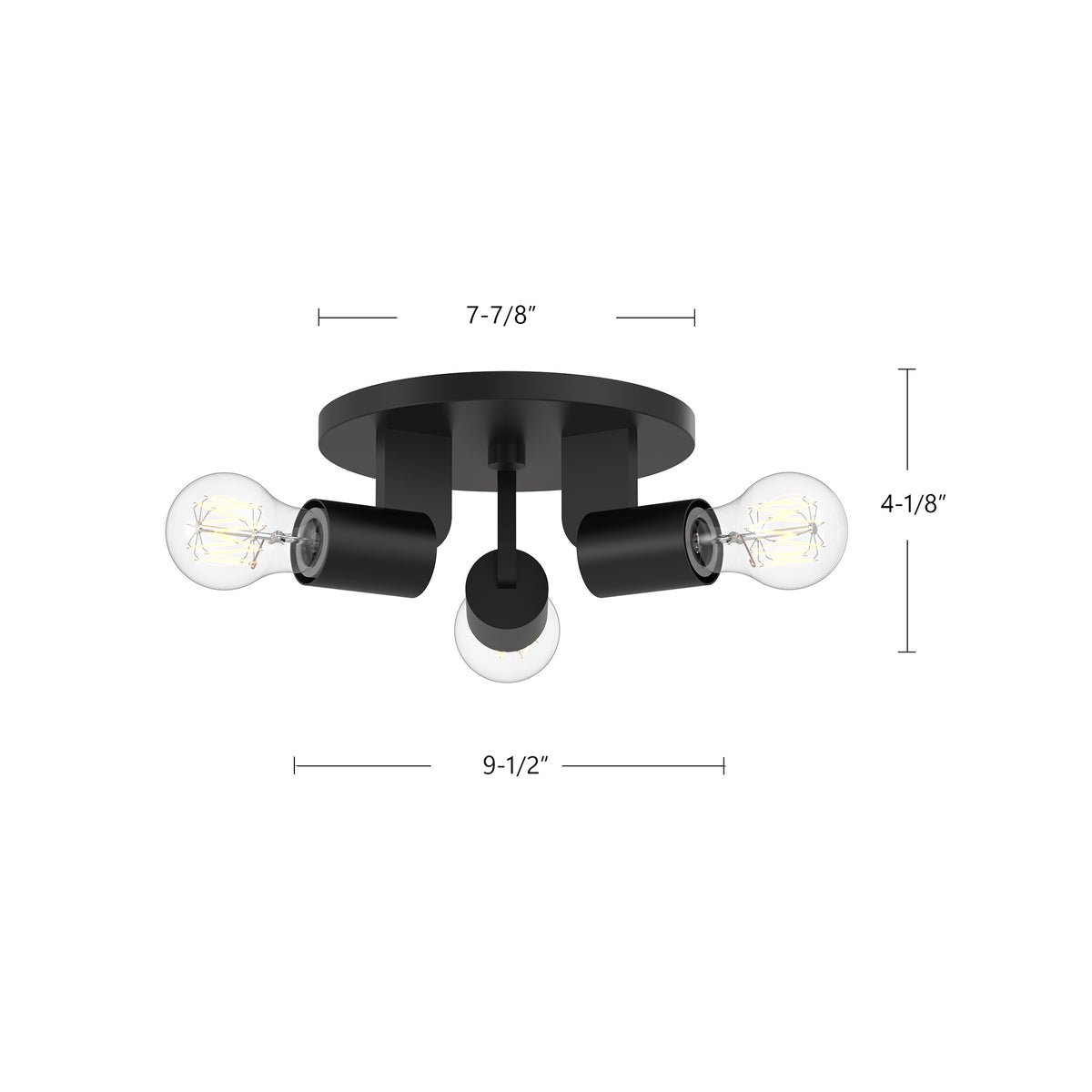 Claire 10-in Matte Black 3 Lights Semi Flush Mount