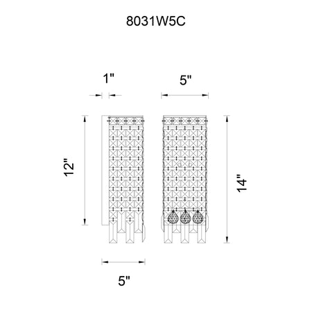 Colosseum 2 Light 5in Chrome Wall Sconce with Crystals