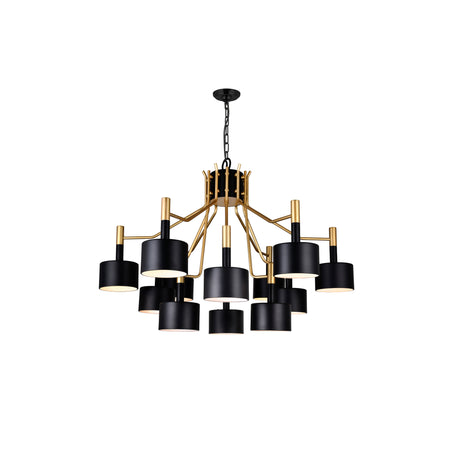 Corna 12 Light Matte Black & Satin Gold Down Chandelier