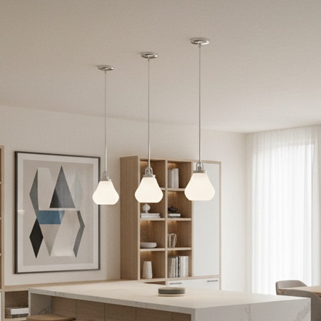 Dervissi Series traditional pendant in chrome and opal glass by Matteo