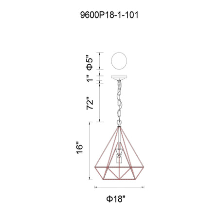 Diamond 1 Light 18in Black Down Pendant