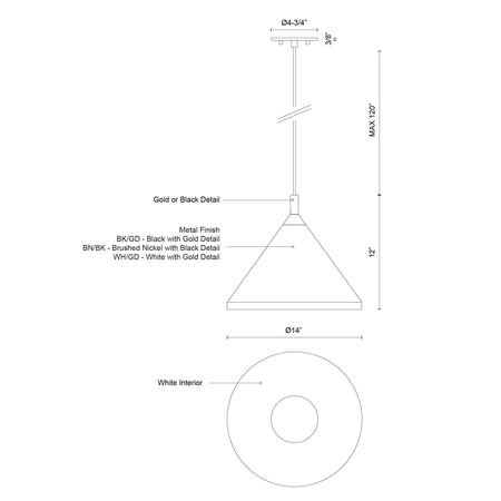 Dorothy 14-in Brushed Nickel With Black Detail 1 Light Pendant