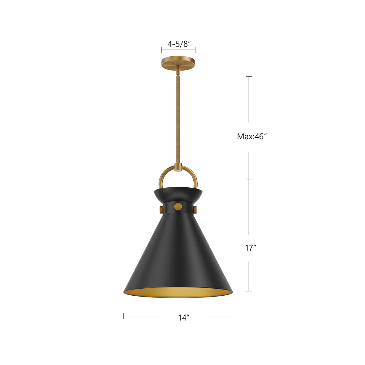 Emerson 14-in Matte Black/Aged Gold 1 Light Pendant
