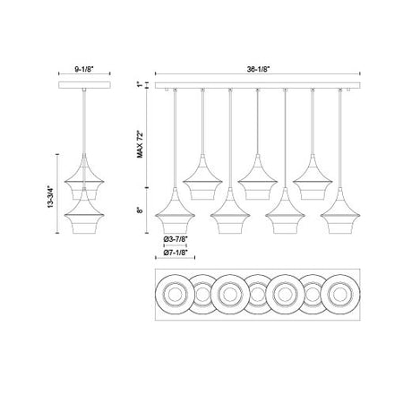 Emiko 36-in Matte Black 7 Lights Linear Pendant