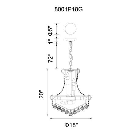 Empire 8 Light 18in Gold Down Chandelier with Crystals