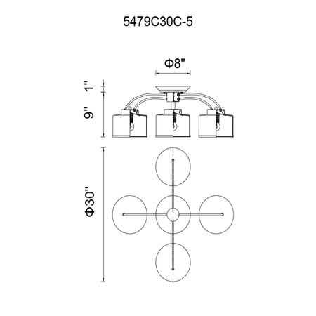 Frosted 5 Light 30in Chrome Drum Shade Flush Mount