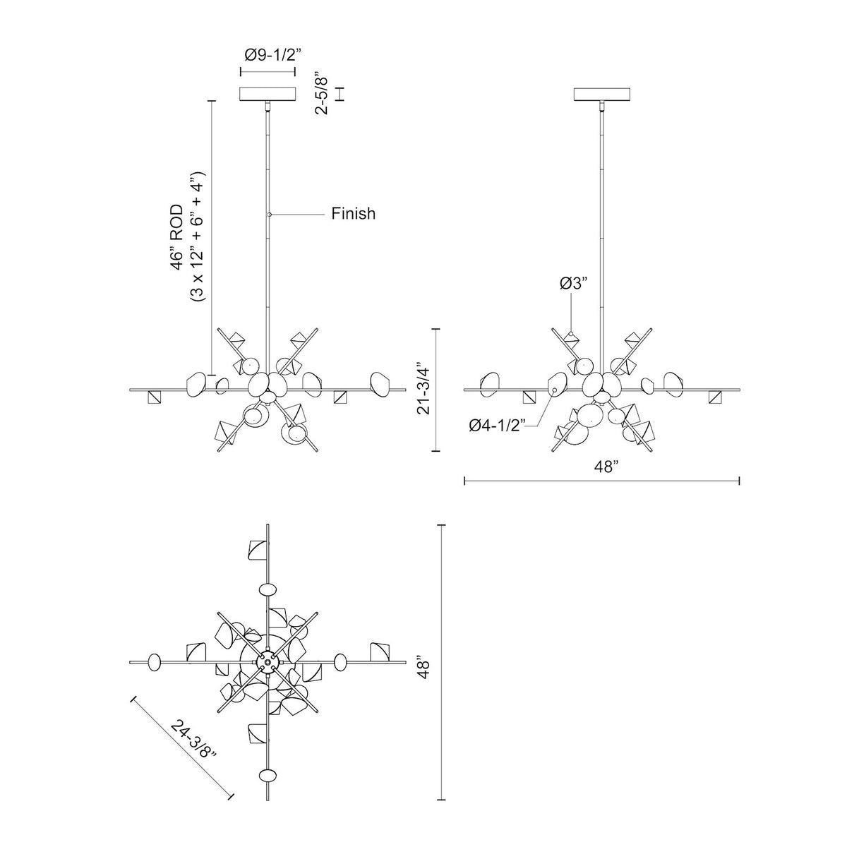 Geode 48-in Black LED Chandeliers