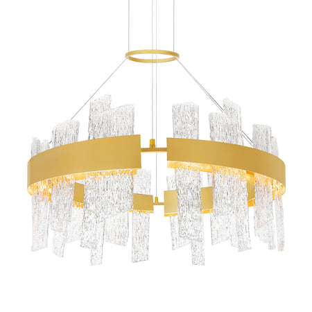 Guadiana Integrated LED 32in Satin Gold Chandelier with Handcrafted Glass