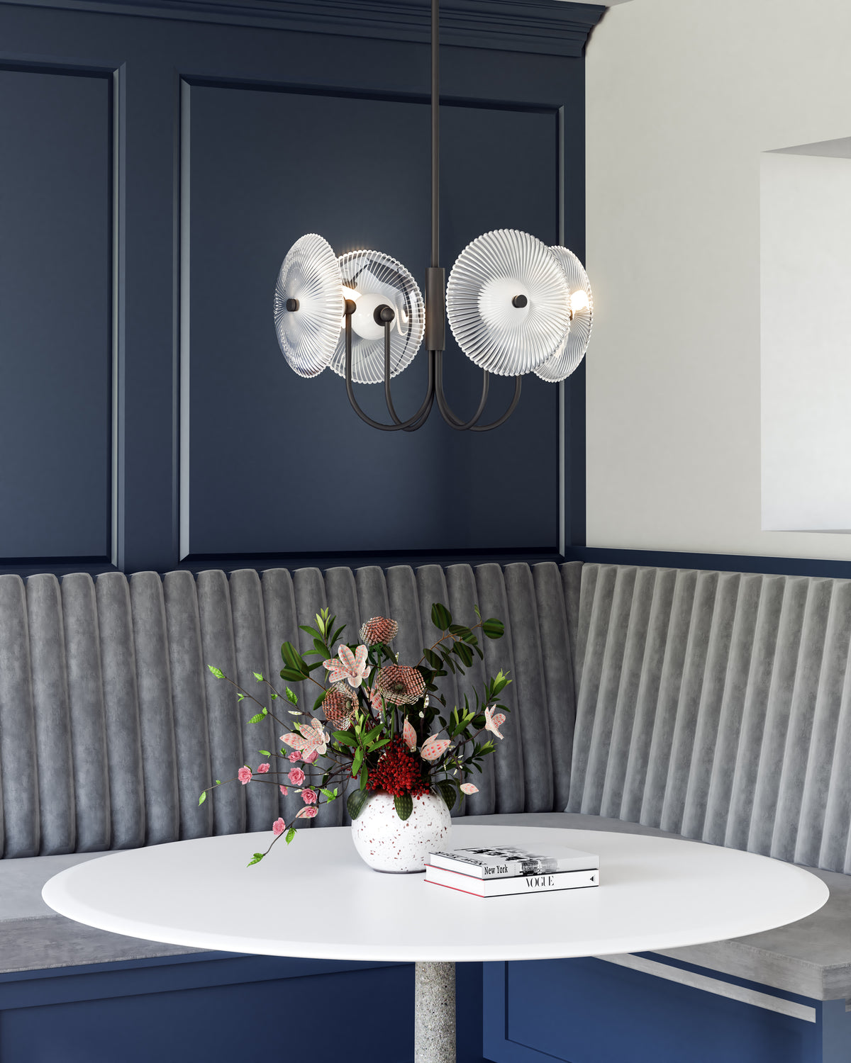 Finish: Matte Black/Clear Ribbed Glass