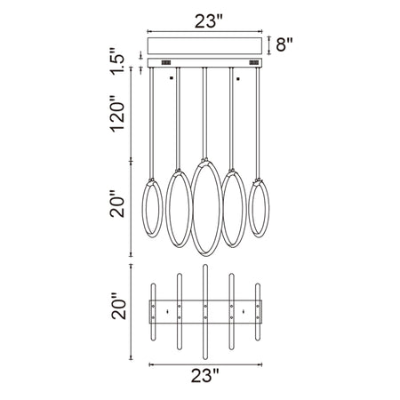 Hoops Integrated LED 23in 5 Ring Satin Gold Chandelier