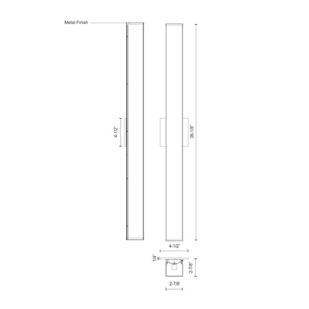 - Size W36-1/8" x H2-7/8" x E2-7/8"