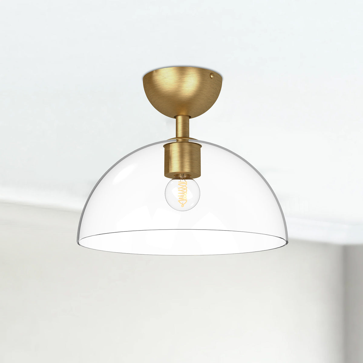 Jude 12-in Brushed Gold/Clear Glass 1 Light Semi Flush Mount