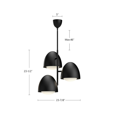 Kenji 24-in Matte Black/Opal Matte Glass 3 Lights Chandeliers
