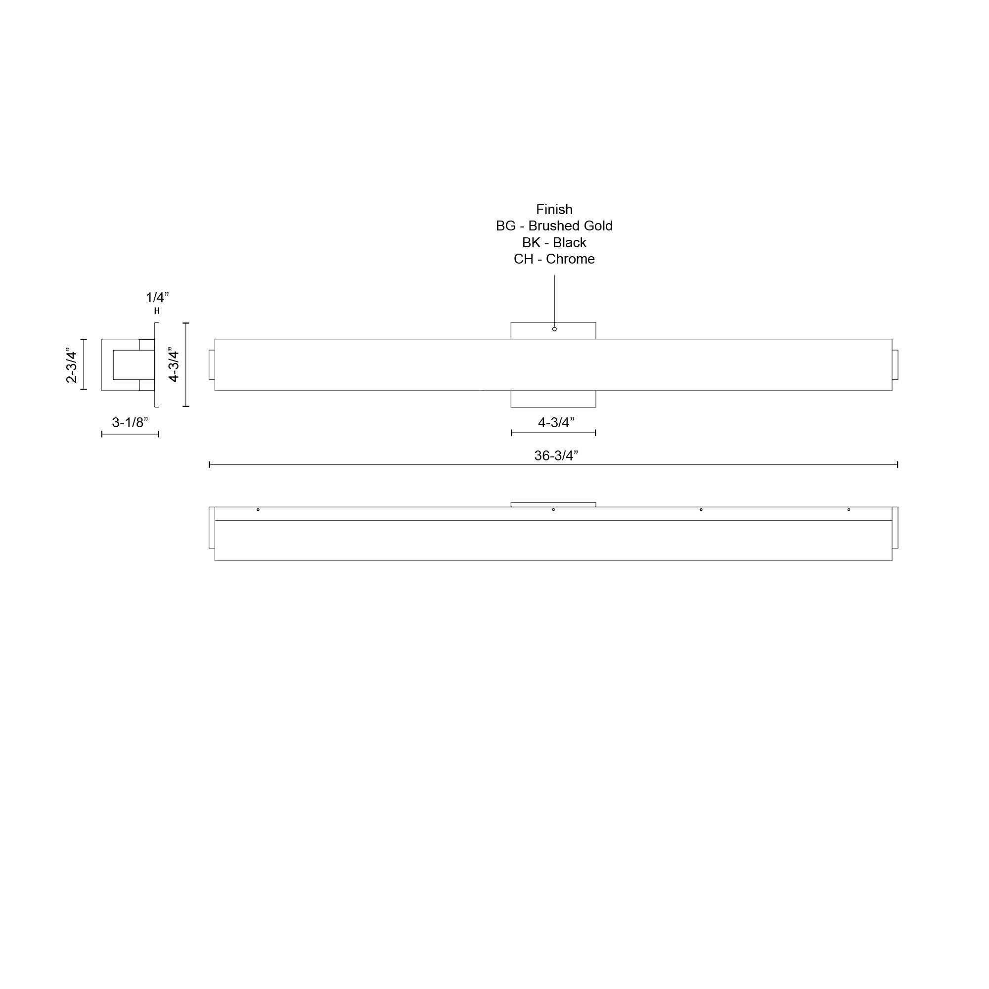 - Size W36-3/4" x H2-3/4" x E3-1/8"