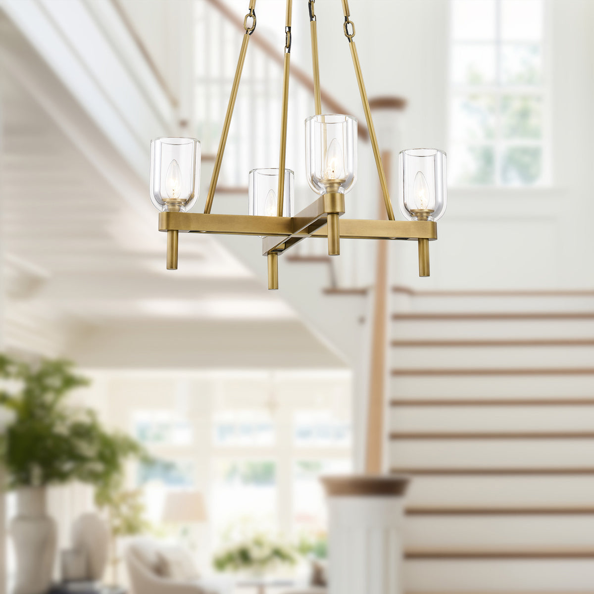 Lucian 22-in Clear Crystal/Vintage Brass 4 Lights Pendant