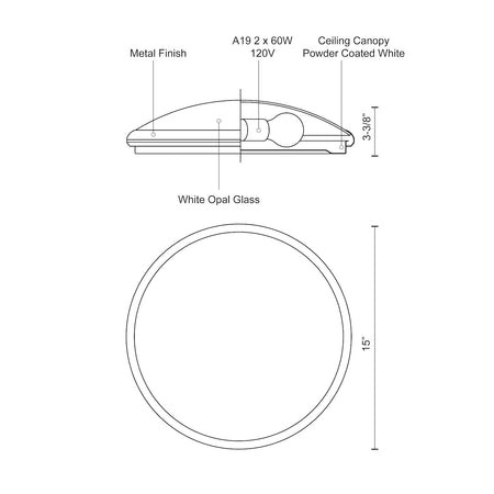 - Size D15" x H3-3/8"