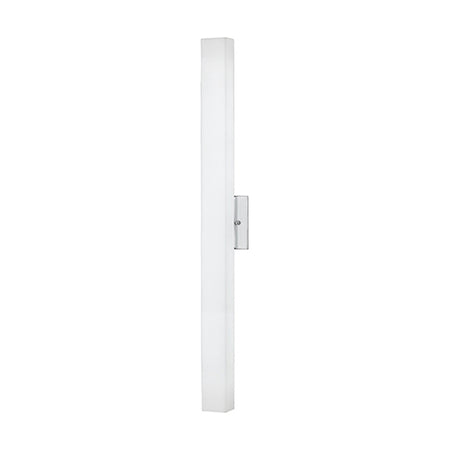 Single LED wall sconce with rectangular shaped white opal glass. Metal details in brushed nickel or chrome finish, and is equipped with our powerful 120V AC LED technology
