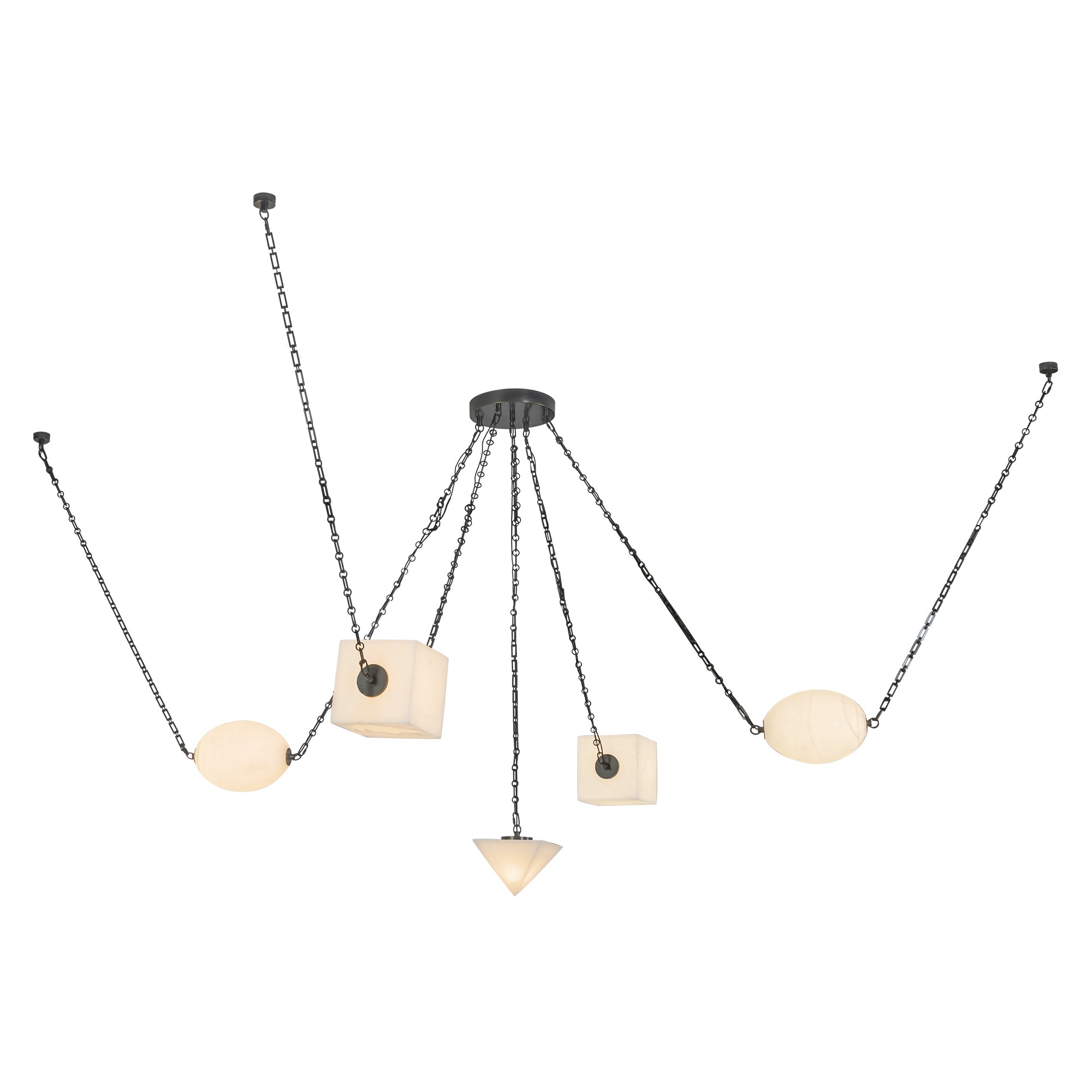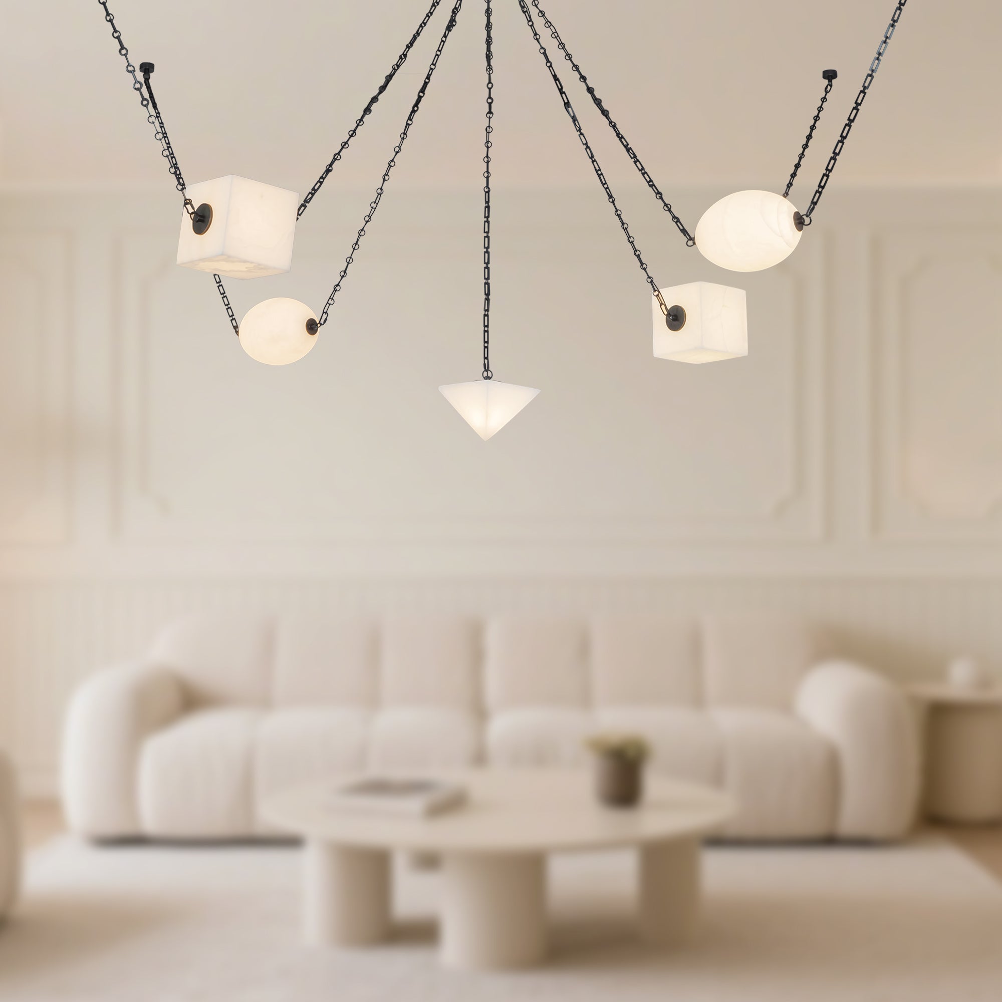 Inspired by salt, the mineral that shaped civilizations and sustained life, this collection celebrates the elemental beauty of the earth’s raw materials. Natural alabaster stone and uniquely molded mineral glass diffuse light with a soft, textural glow, reminiscent of beach glass and the dust of the sea. Sculptural forms in triangles, ovals, and squares are framed by patina brass or urban bronze, grounding the ethereal with structure and strength. Each fixture, whether suspended, wall-mounted, or standing, links together in a quiet constellation of light, echoing the ancient web of trade and connection salt once forged across the world. From the Roman salarium to sacred offerings shared at the table, salt has bound humanity in ritual, preservation, and communion. This collection honors that enduring connection, transforming light and matter into symbols of gathering, memory, and the timeless beauty found in the simplest grain.