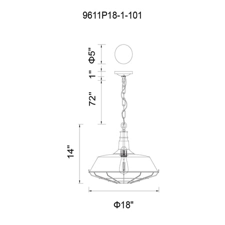 Morgan 1 Light 18in Black Down Pendant