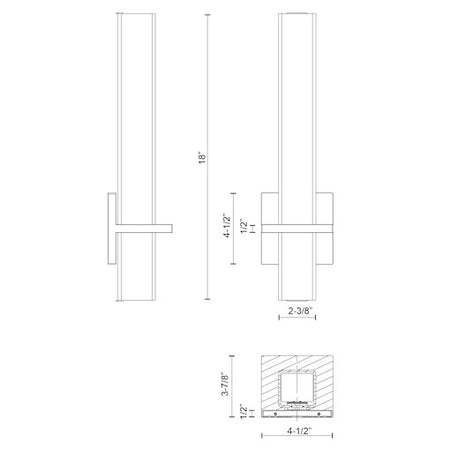 - Size W2-3/8" x H18" x E3-7/8"