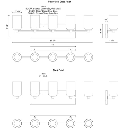 Nola 32-in Black 5 Lights Vanity