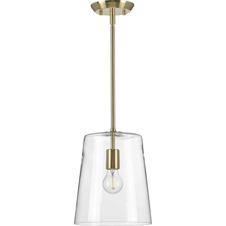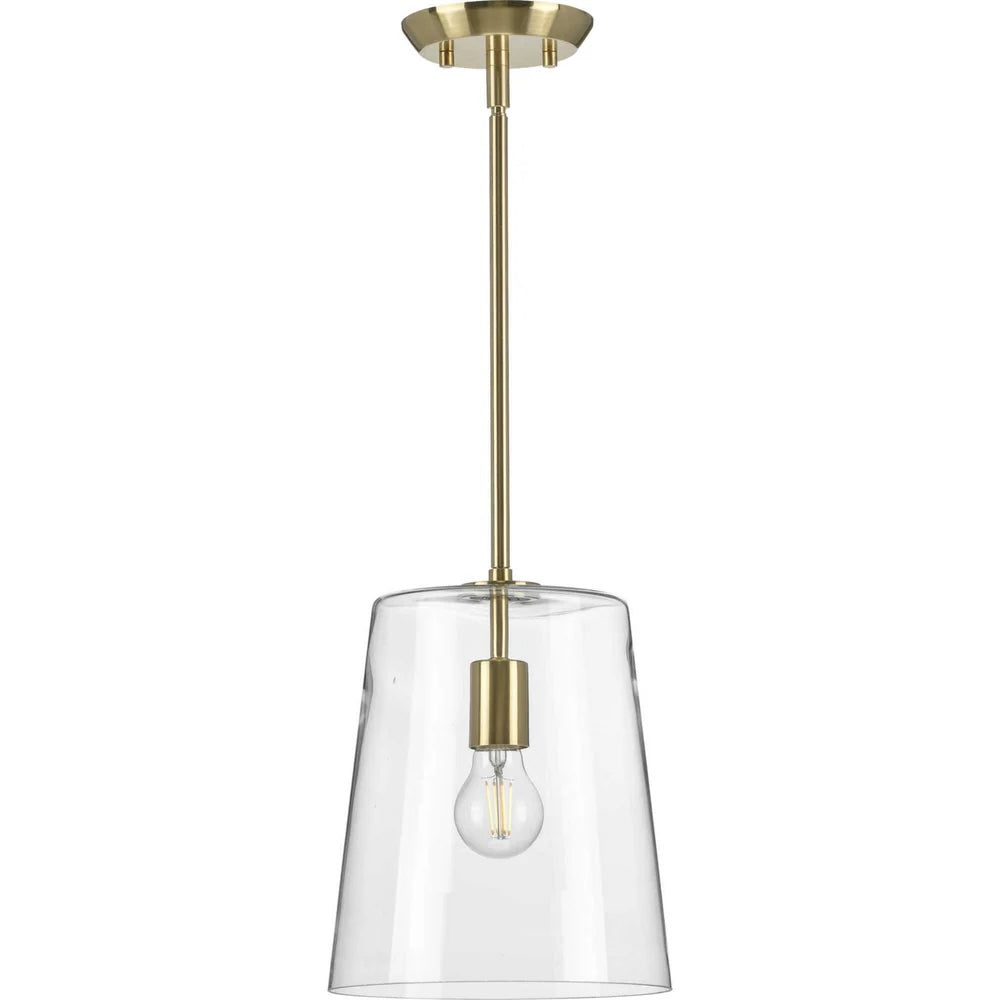 Clarion Collection One-Light Clear Glass Pendant Light in Satin Brass