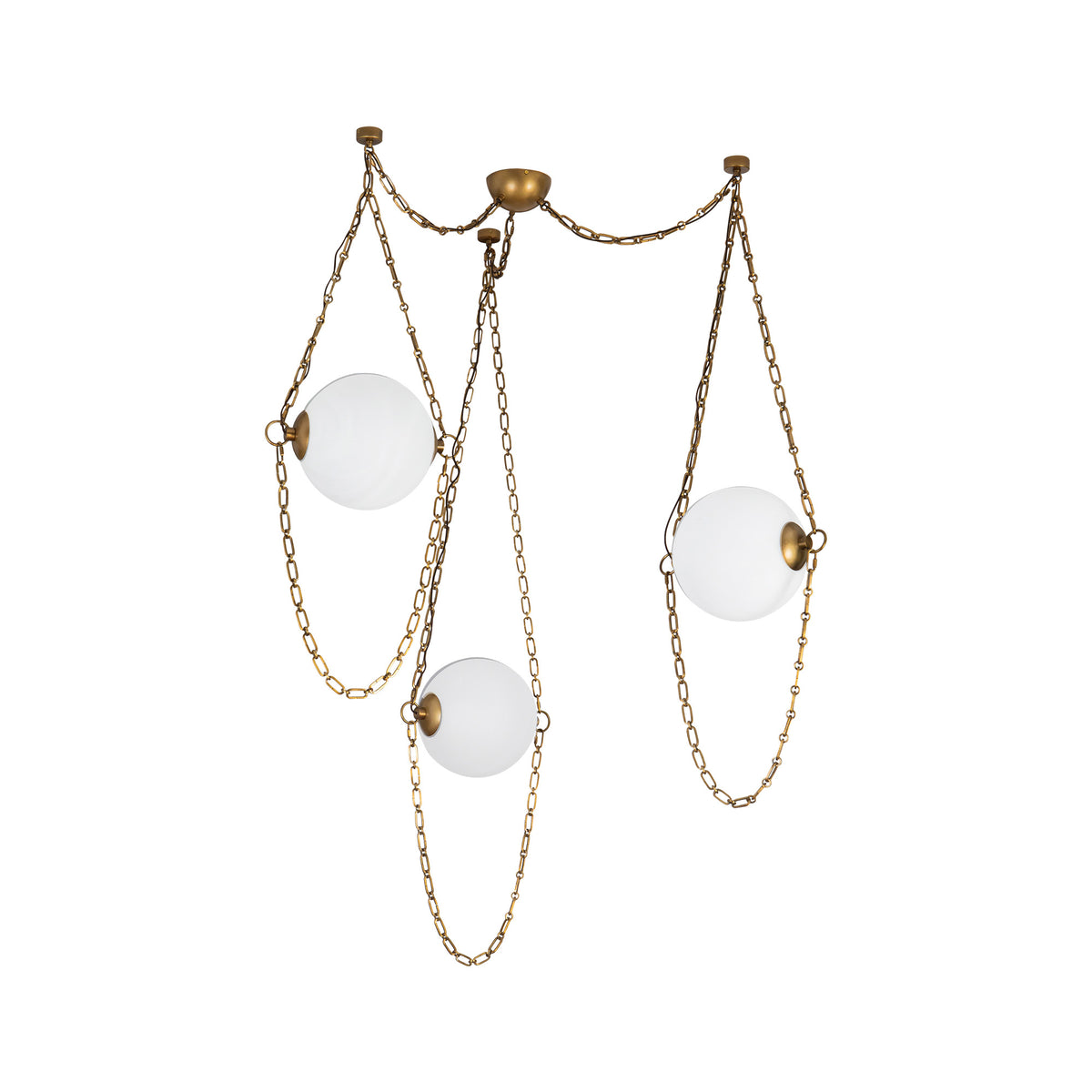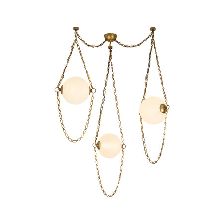 Elevate your space with Petra, a jewelry inspired swag chandelier that drapes custom chains around artisan glass, creating a striking mix of vintage brass charm and modern innovation. Available in urban bronze and vintage brass, its integrated LED design offers energy-efficient brilliance. Perfect for modern interiors, statement lighting, and luxury home décor, Petra's adjustable chain details let you customize the look for any room, from dining areas to entryways.