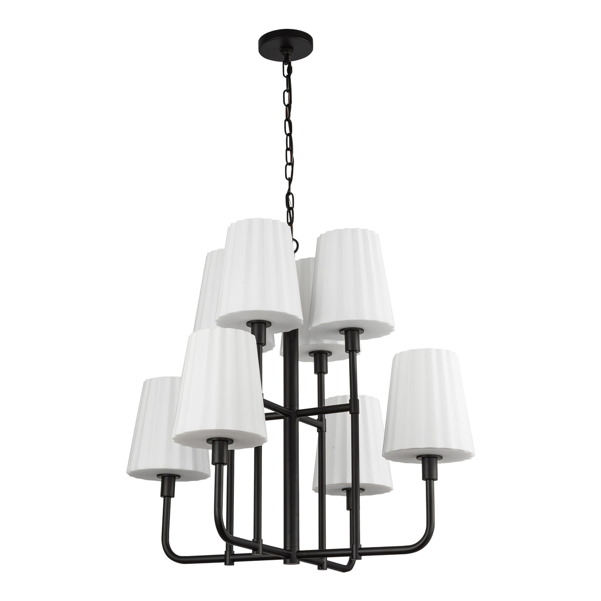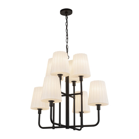 Plisse 30-in Matte Black/Opal Matte Glass 8 Lights Chandeliers