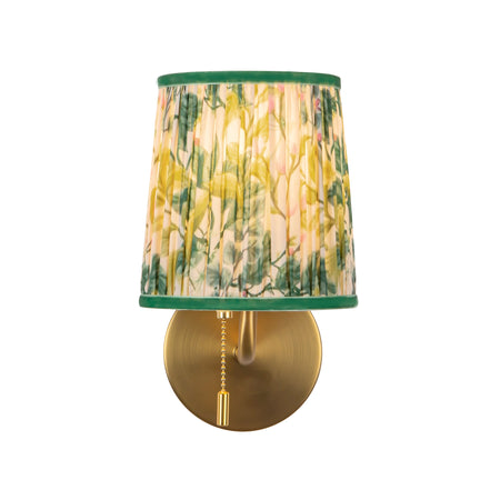 The Scout Wall Sconce refreshes classic wall lighting with patterned pleated linen shades in white, green, butter yellow, and warm red, paired with whimsical metalwork. Featuring a convenient pulley switch, it’s perfect for bedside use or anywhere ease of operation is desired. Ideal for hallways, bedrooms, or accent lighting, the Scout Wall Sconce delivers soft, ambient illumination while adding playful style. This fixture blends traditional charm with modern functionality, making it an excellent choice for transitional, eclectic, or contemporary interiors seeking unique, character-filled lighting.