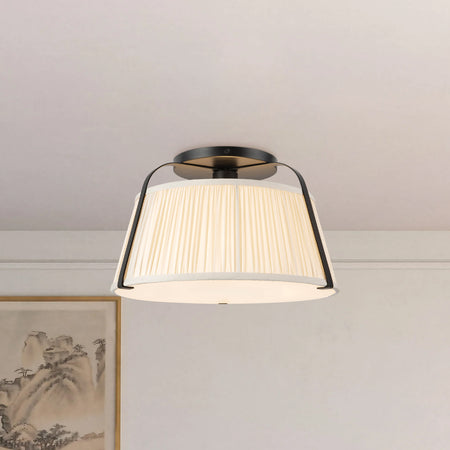 The Scout Flush Mount updates traditional pleated linen shades with vibrant patterns in white, green, butter yellow, and warm red. Paired with playful metalwork, this ceiling fixture delivers functional, ambient light while adding personality to bedrooms, hallways, or living spaces. Its compact design suits lower ceilings while maintaining Scout’s signature style. Ideal for transitional or eclectic interiors, the Scout Flush Mount brings character, warmth, and charm, transforming everyday spaces into inviting, visually engaging rooms.