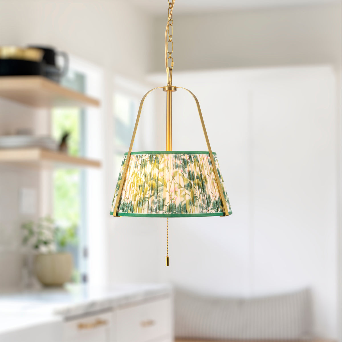 The Scout Pendant combines traditional pleated linen shades with playful, colorful patterns in white, green, butter yellow, and warm red. Its fun metalwork elevates classic design, making it a statement piece over dining tables, kitchen islands, or entryways. Blending whimsy with functional lighting, the Scout Pendant adds personality and charm to transitional, eclectic, or contemporary interiors. Perfect for those seeking unique, eye-catching fixtures, this pendant balances vintage inspiration with modern style for a distinctive, stylish look.