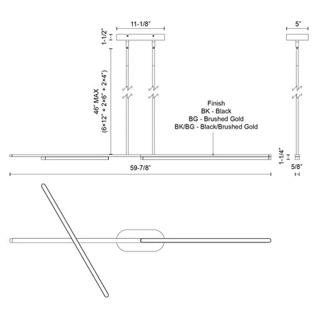 - Size L59-7/8" x W5/8" x H1-1/4"