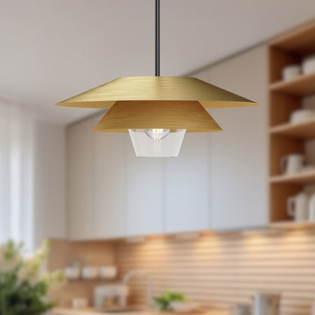 Tetsu 20-in Brushed Gold/Clear Glass 1 Light Pendant