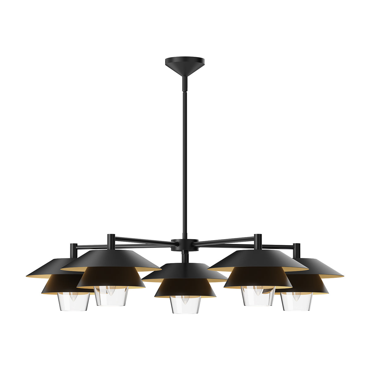 Tetsu 38-in Matte Black/Clear Glass 5 Lights Chandeliers