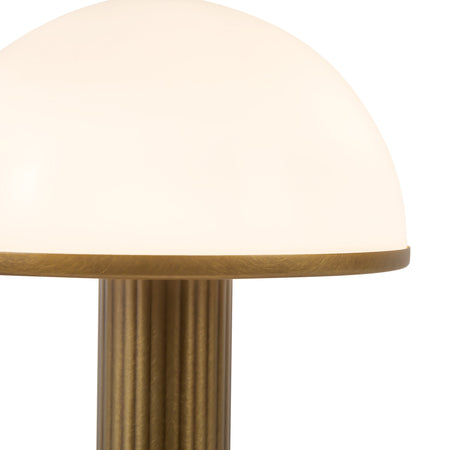 The Vienna rechargeable table lamp blends classical inspiration with modern functionality. Its ribbed metal stem, reminiscent of ancient Greek columns, brings a sense of timeless sophistication, while the airy opal glass diffuser balances weight with lightness. Rechargeable and portable, Vienna delivers warm ambient illumination wherever it is placed: from bedrooms and living rooms to dining tables or sideboards. The combination of heavy metal elements with delicate glass creates a striking visual contrast, making Vienna both a functional light source and a sculptural centerpiece.