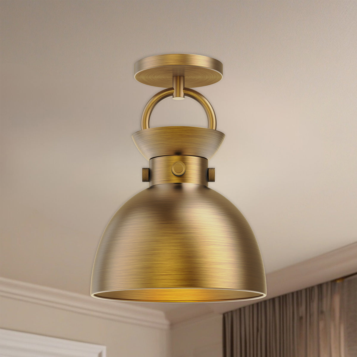 Waldo 9-in Aged Gold 1 Light Semi Flush Mount